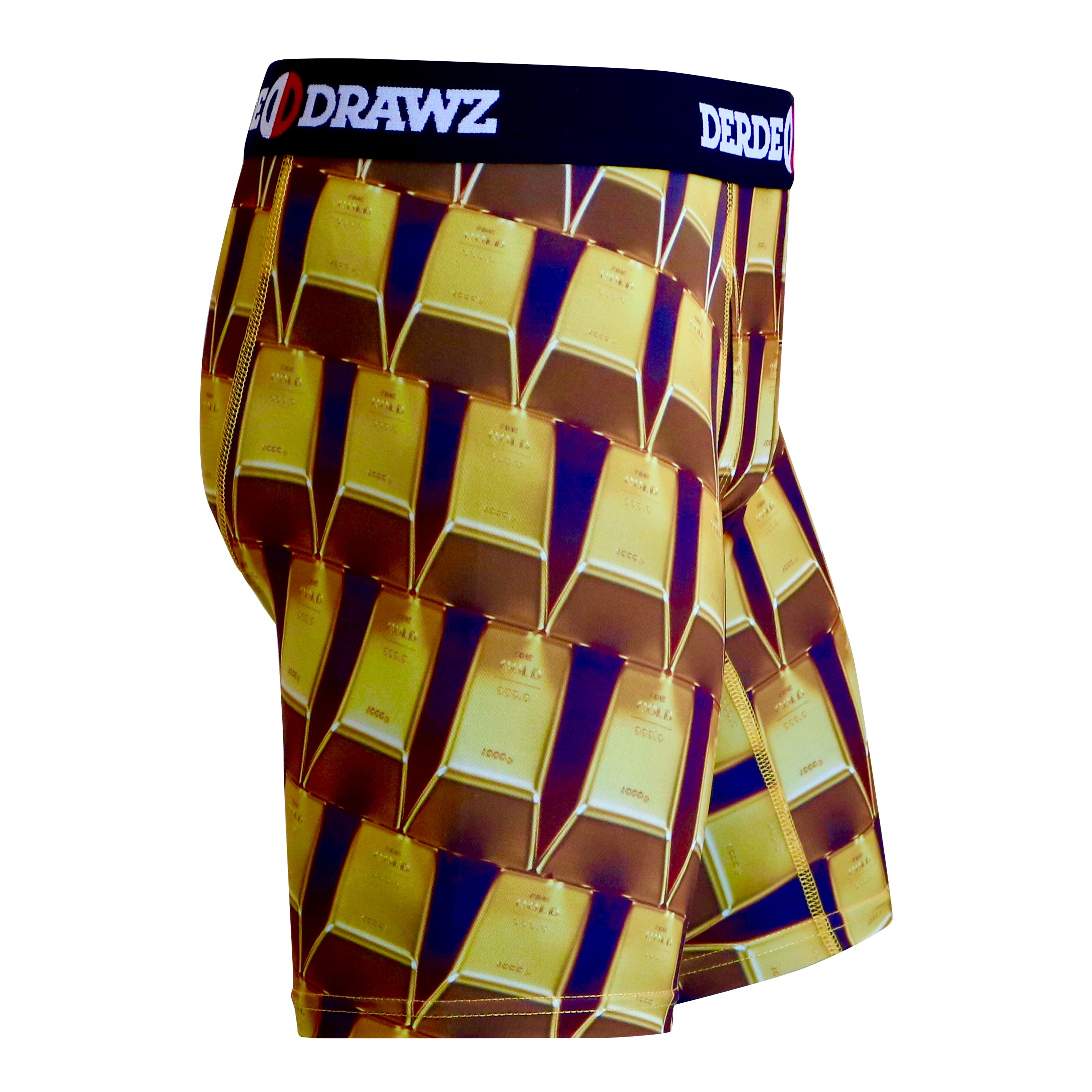 Our “Bars” print is a shoutout to the world’s most original form of currency. Gold is a precious metal that is as versatile as our underwear. It is used for everything from currency and jewelry to medicinal and dental purposes. Metallic gold is even used in food and cocktails as a decorative ingredient. Be sure to let them know that you’re living your life like its golden with the Derde Drawz “Bars” print.
